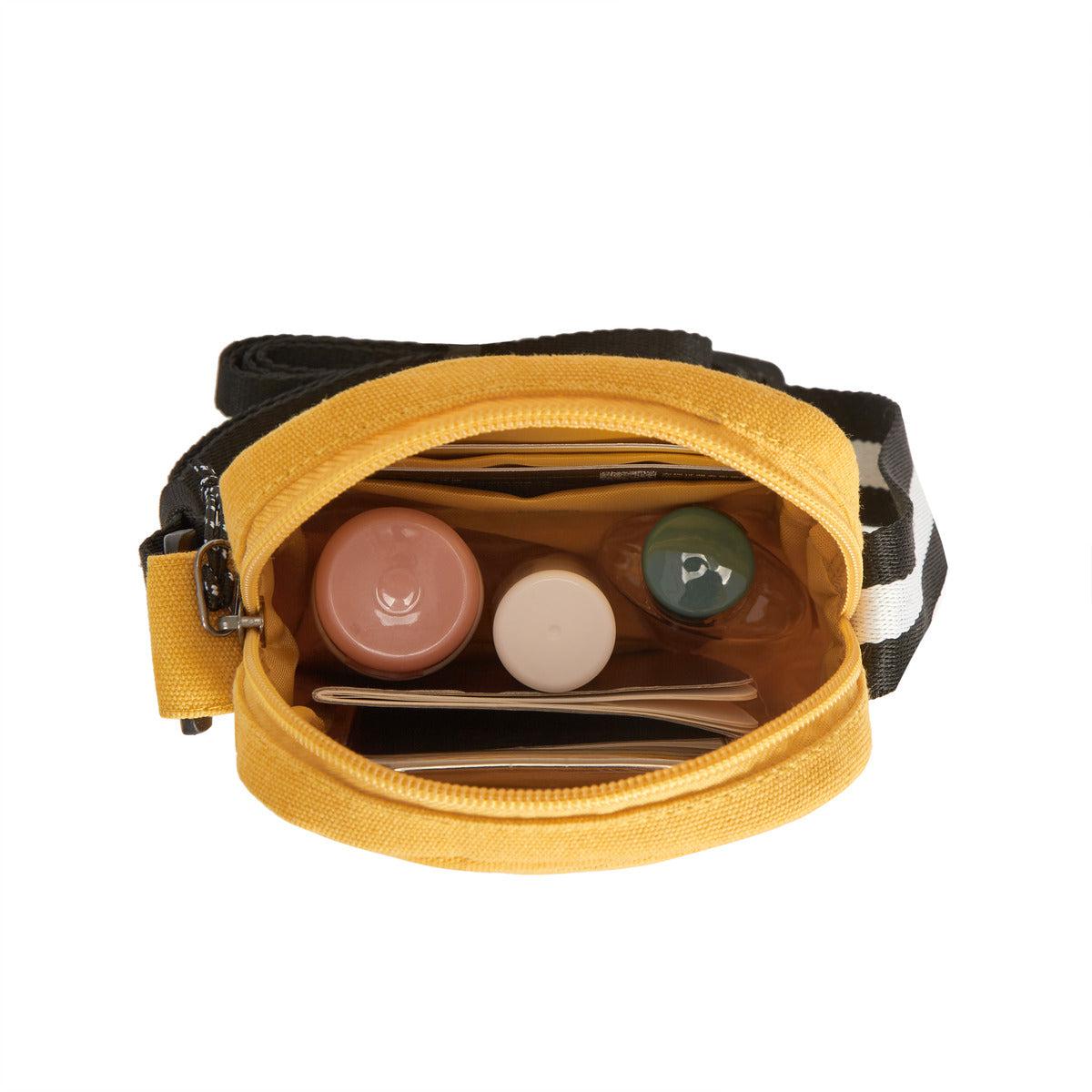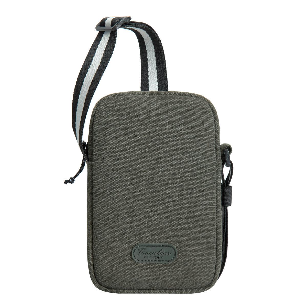 Compact crossbody bag features abrasion-resistant canvas with a droplet barrier and a smooth-glide adjustable crossbody strap. Plus, interior RFID-blocking slots.