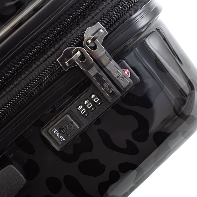 Contemporary and cool, the Heys Black Camo luggage offers built-in TSA approved combination lock and four dual spinner wheels for rolling ease along in any direction you want to go.