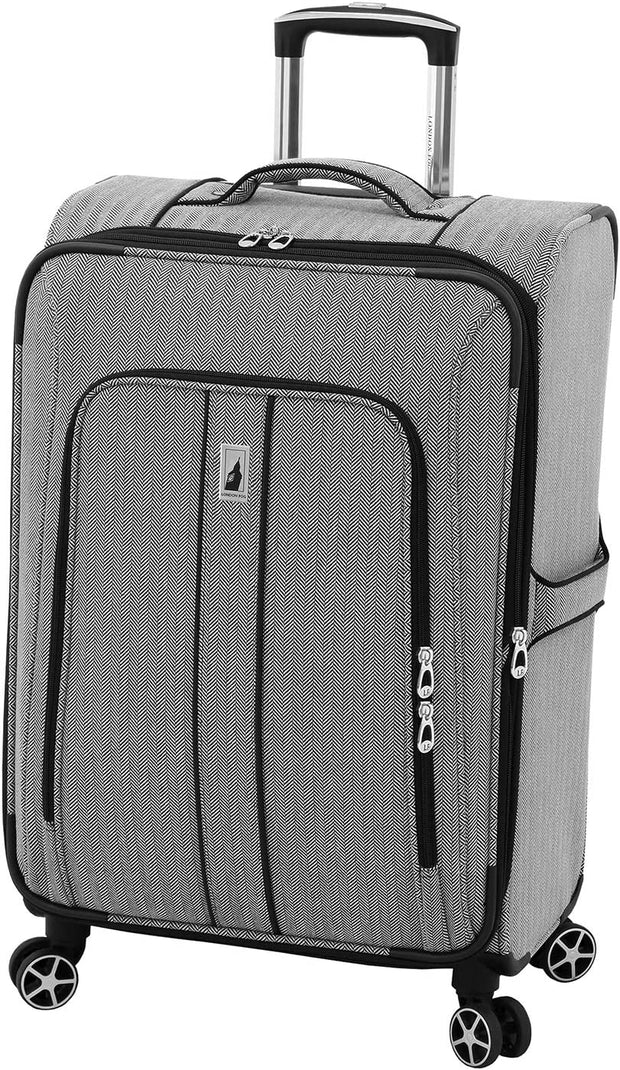You will travel with confidence along with your Newcastle 24" Spinner . The London Fog Newcastle Collection gives you a classic yet stylish feel. Made of durable woven herringbone material. This bag is perfect for your travels across the world. In addition to having plenty of room for all your travel needs, the 8-low profile 360 degree multi-directional wheels make traveling a breeze. The Newcastle Collection comes with a 10-Year Limited Warranty. Available in Slate Bronze Herringbone and Rose Charcoal Herringbone.