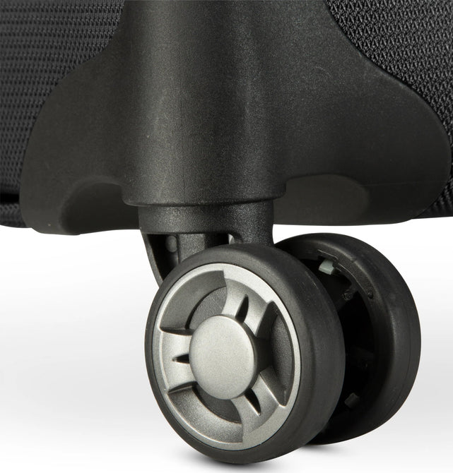The PVC lined built-in wet pocket keeps your essentials dry and organized. 360 ̊ dual wheels make navigating through airports a breeze.