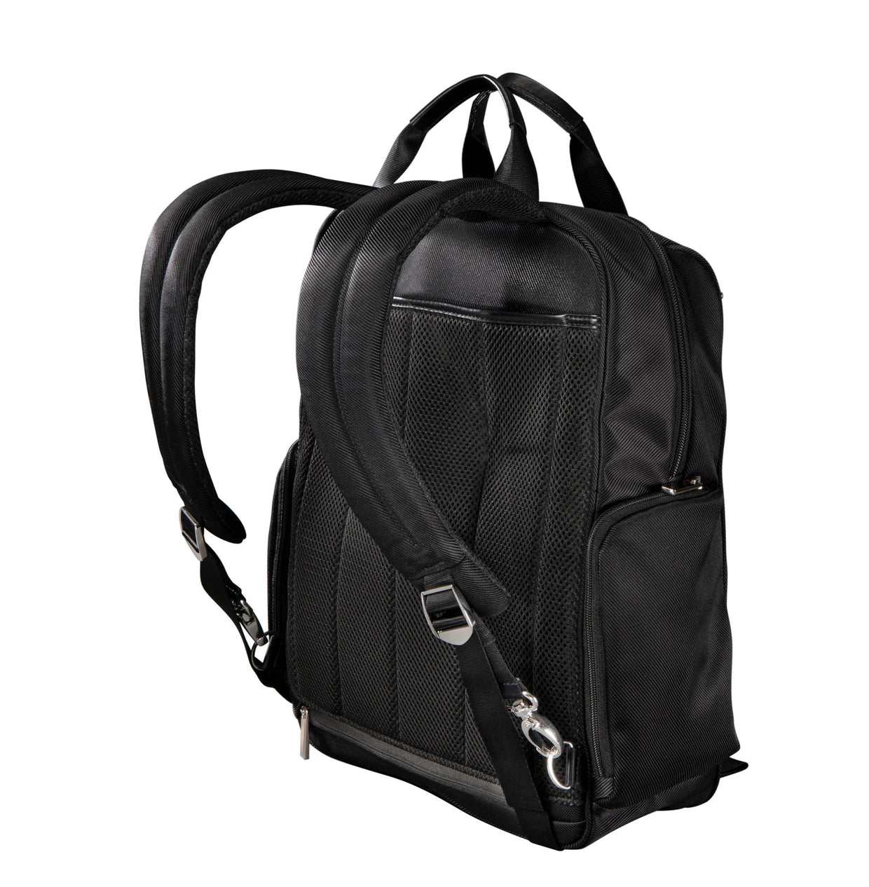 Featuring plenty of pockets to keep things organized—including quilted padded laptop(holds up to a 16 inch laptop) and tablet pockets, and a handle pass-through strap for transporting it on top of a suitcase, this great-looking backpack makes packing for a short getaway (leisure or business) quick and easy.